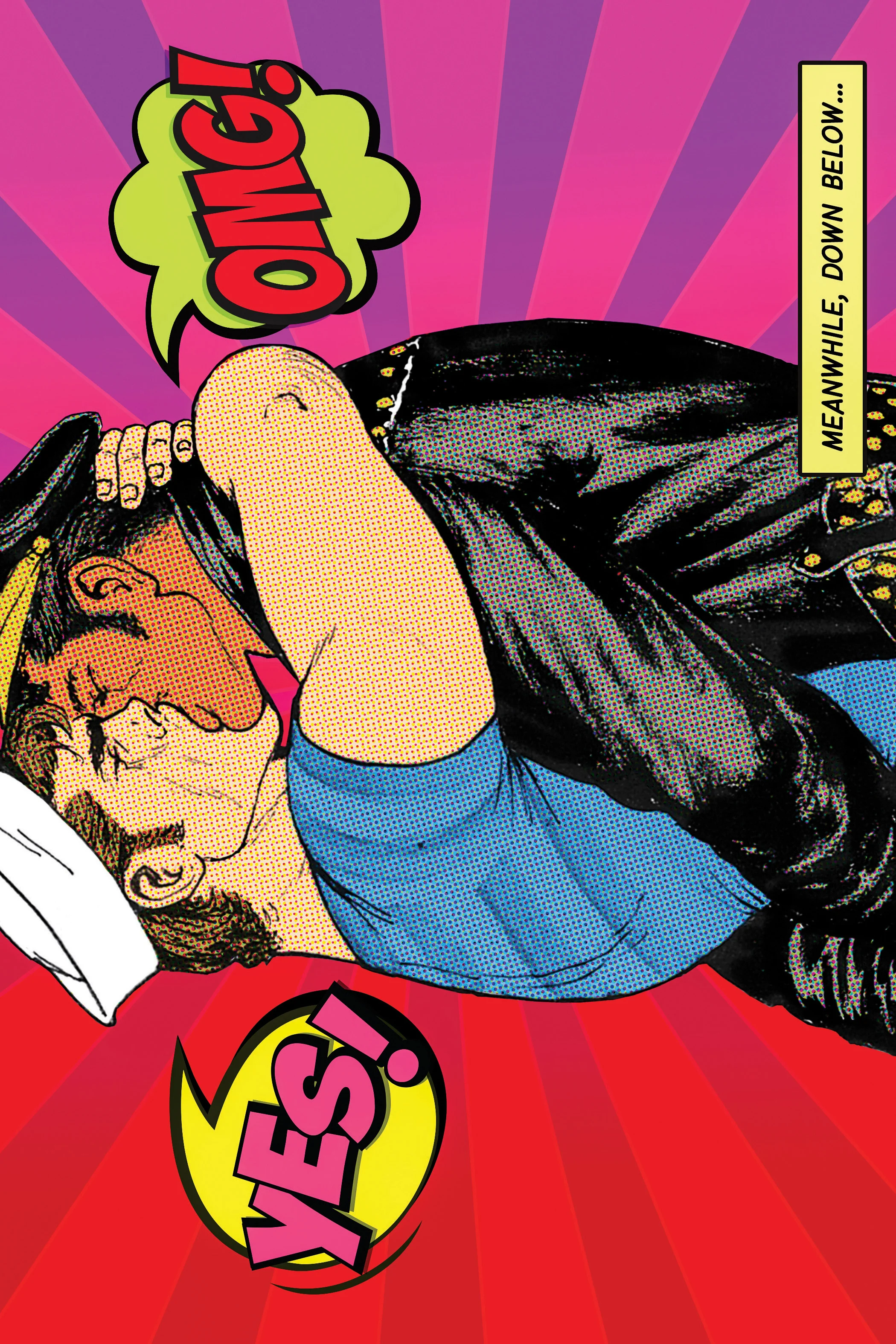 Introducing our sexy, Tom of Finland “Kiss-Pow” card, styled in a vintage comic-book twist. The front features a sexy sailor & hot leatherman making out in tight embrace, while the inside reveals the surprises down below. Get this card today for the special dude in your life. (Also great for Valentine’s Day, anniversaries, gay weddings, birthdays and much more!)